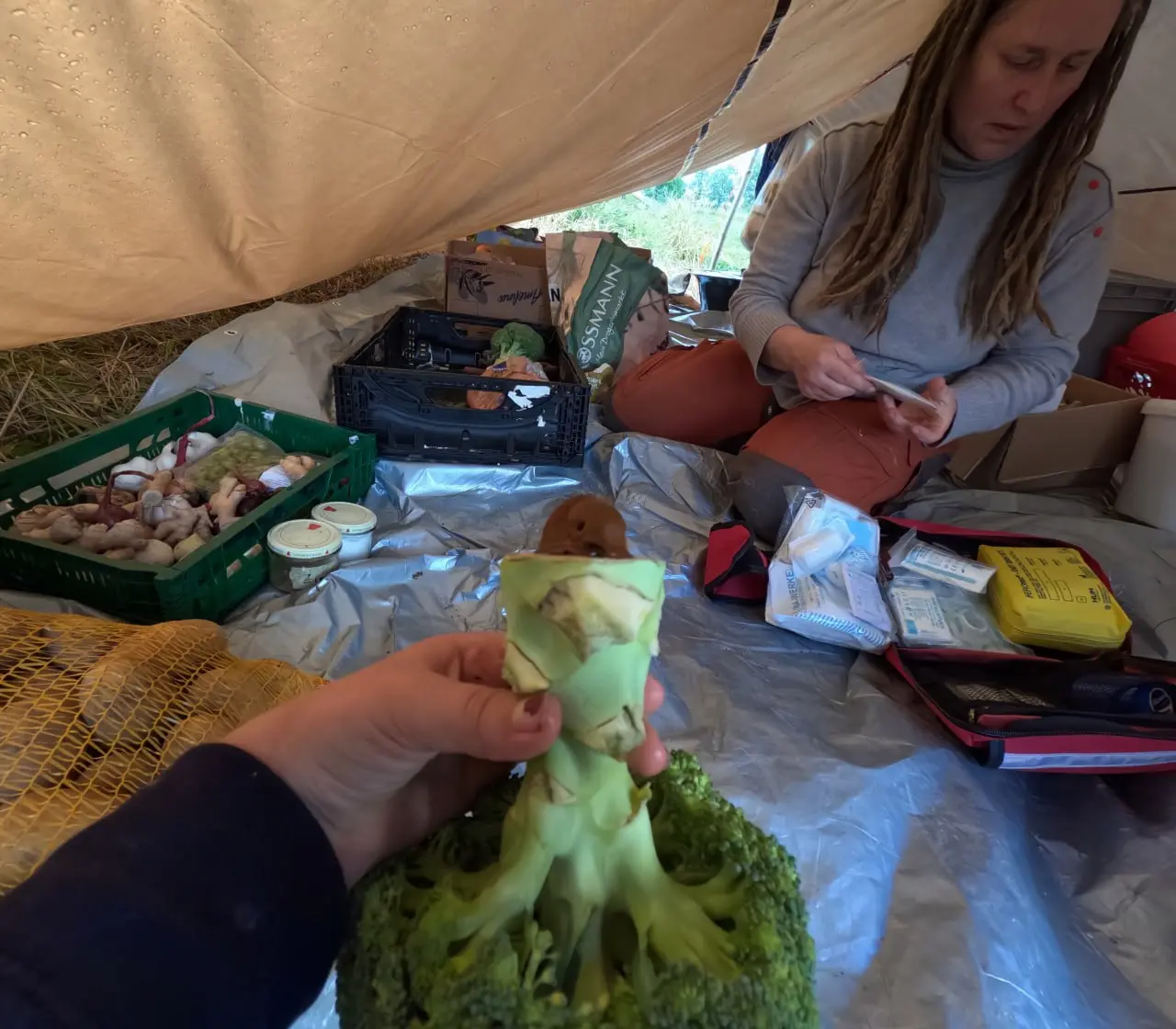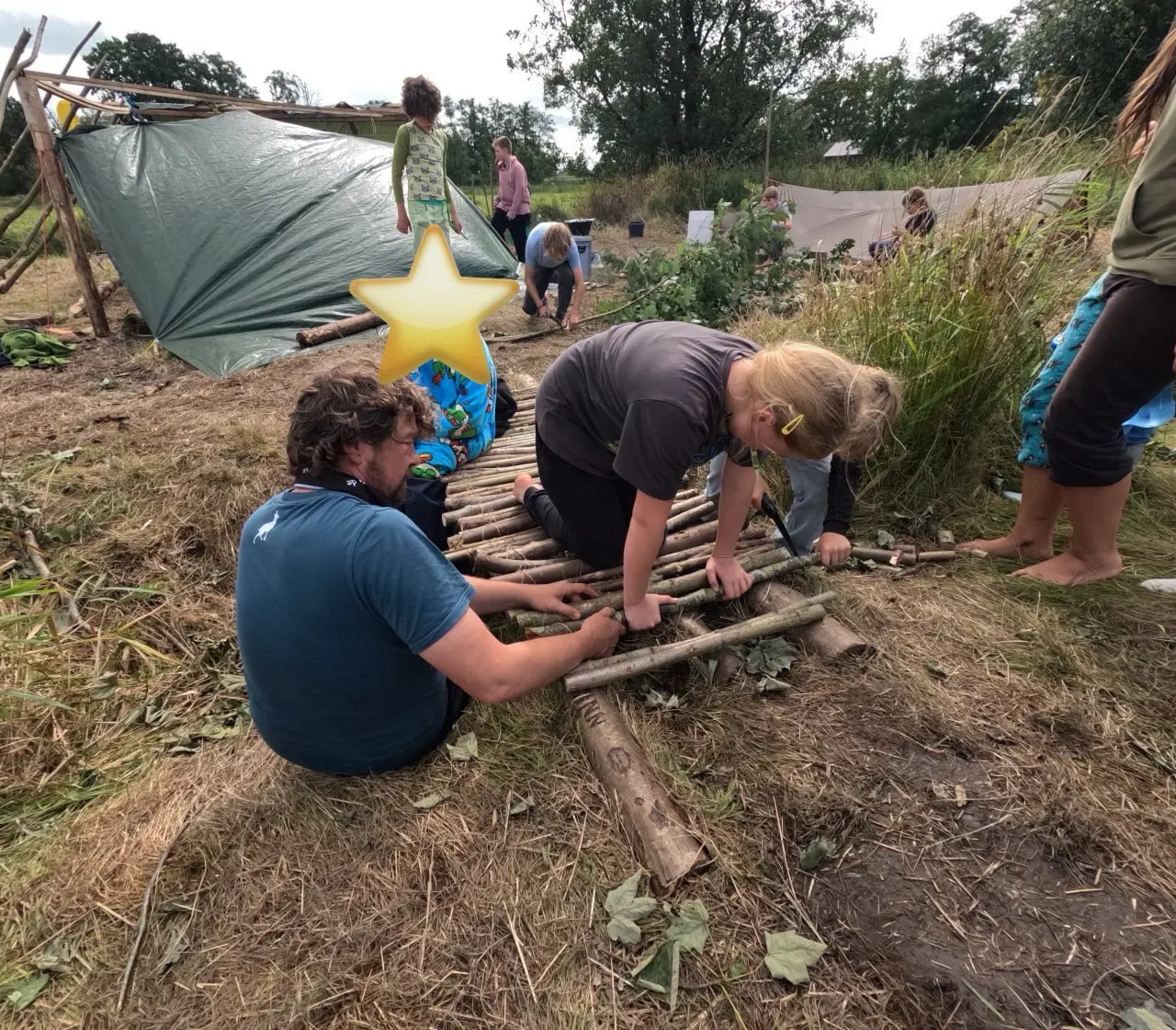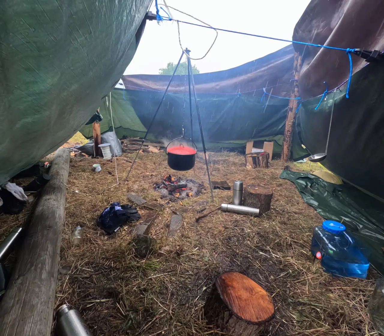 Schon zu Beginn hieß es: Anpacken! Gemeinsam wurde das Lager aufgebaut – Zelte gab es nicht, nur ein großes Tarp diente uns als Schutz gegen Wind und Regen. Und den bekamen wir reichlich! Doch der Stimmung tat das Wetter keinen Abbruch.
