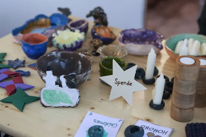 Bereits seit Wochen hatten unsere Schülerinnen und Schüler gebastelt, gemalt, frischen Apfelsaft hergestellt und zum Schluss auch noch gebacken. Das Ergebnis konnte sich sehen lassen: Ein buntes, liebevoll gestaltetes Sortiment, das viele Besucherinnen und Besucher begeisterte.